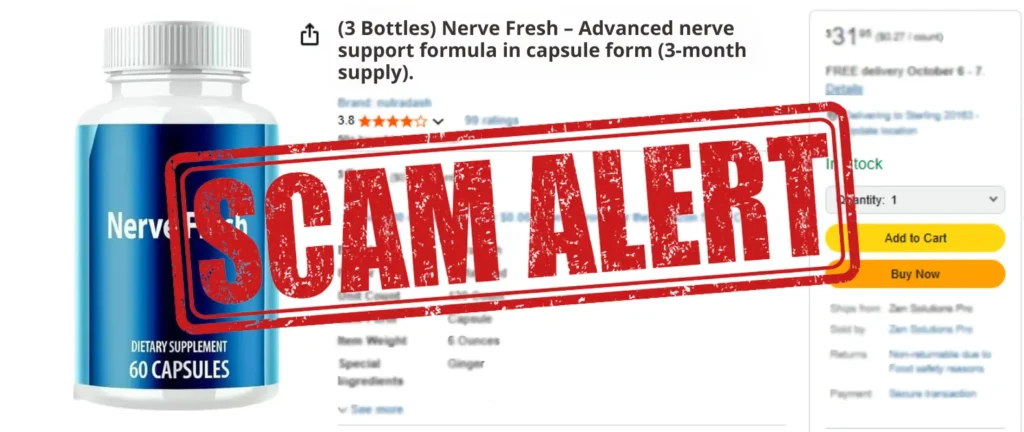 Unfortunately, many people end up getting scammed when trying to order Nerve Fresh because they don’t purchase it from the official website. A lot of buyers are tempted by lower prices on marketplaces like Amazon or other third-party platforms — and end up receiving counterfeit bottles.
